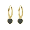 12 mm hjerte svart zirkon creol i forgylt sølv med blank overflate og 2 fasettslipte svarte zirkoner.