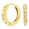 14 mm vanntette zirkon creol i forgylt stål med blank overflate og fasettslipt hvit zirkon.