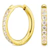 18 mm vanntette zirkon creol i forgylt stål med blank overflate og fasettslipt hvit zirkon.