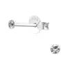 2 mm krystall ørestikker i sølv med blank overflate og 2 glatte grå krystaller.