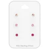 3 mm rosa krystall ørestikker i sølv med blank overflate og 2 glatte hvite krystaller og 2 glatte rosa krystaller og 2 glatte rosa krystaller.