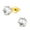 6 mm vanntette ørestikker i forgylt stål med blank overflate og 2 fasettslipte hvite zirkoner.