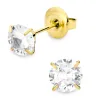 6 mm vanntette solitaireørepynt i forgylt stål med blank overflate og fasettslipt hvit zirkon.