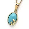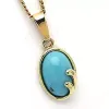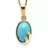 anheng i 9 karat gull med blank overflate og 1 cabochonslipte blå turkiser.