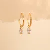 12 mm creol i 9 karat gull med blank overflate og 2 fasettslipte hvite zirkoner.