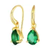dråpe mørkegrønn krystall øredobber i forgylt sølv med blank overflate og 2 glatte mørkegrønne mørkegrønn krystaller.