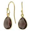 dråpe røykfarget krystall øredobber i forgylt sølv med blank overflate og 2 glatte røykfargede røykfargede kvarts.