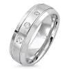 Elegant ring i rodinert sølv med blank og børstet overflate og 3 fasettslipte hvite zirkoner.