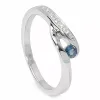 blå ring i sølv med blank overflate og 1 fasettslipte blå safirer og 7 fasettslipte hvite zirkoner.