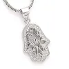 fatimas hånd anheng i sølv med blank overflate og fasettslipt hvit zirkon.