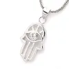 hamsas hånd anheng i sølv med blank overflate og 2 fasettslipte hvite zirkoner.