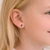 hanske rød barneøredobb i sølv med blank overflate og glatt hvit krystall og glatt rød krystall.