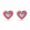 hjerte ørestikker i sølv med blank overflate og glatt rosa emalje.