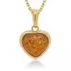 Hjerte rav halskjede i forgylt sølv med anheng i forgylt sølv