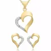 Hjerte sett med øredobber og halskjeder i forgylt sølv hvit zirkon