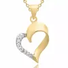 hjerte sett med øredobber og halskjeder i forgylt sølv med og fasettslipt hvit zirkon.