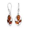 blomst rav øredobber i sølv med blank overflate og 6 glatte konjakk farget rav.