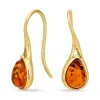 herlig dråpe rav øredobber i forgylt sølv med blank overflate og 2 glatte konjakk farget rav.