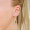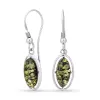 ovale rav øredobber i sølv med blank overflate og 2 glatte grønne rav.