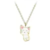 katt halskjede i forgylt sølv med blank overflate og glatt hvit emalje og glatt rosa emalje.