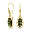 ovale rav øredobber i forgylt sølv med blank overflate og 2 glatte grønne rav.