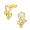 klar quartz øredobber i forgylt messing med blank overflate og glatt hvit klar quartz.