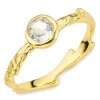 klar quartz ring i forgylt messing med blank overflate og 1 fasettslipte hvite kvarts.