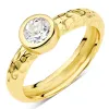 klar quartz ring i forgylt messing med blank overflate og 1 glatte hvite kvarts.