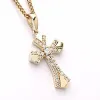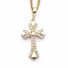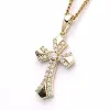 kors anheng i 9 karat gull med blank overflate og 32 fasettslipte hvite zirkoner.