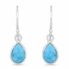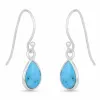 lange dråpe øredobber i sølv med blank overflate og 2 fasettslipte grønne turkise.