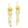 Lange blå kjedeøreringer i forgylt messing - Eliné