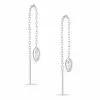 lange kjedeøreringer i sølv med blank overflate og 2 fasettslipte hvite zirkoner.