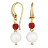 lange rosa krystall øredobber i forgylt sølv med blank overflate og 2 glatte rosa krystaller 2 hvite perler.