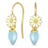 margeritt blå krystall ørekroker i forgylt sølv med blank overflate og 2 glatte blå krystaller.