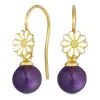 Margeritt lilla krystall ørekroker i forgylt sølv