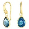 mørkeblå krystall øredobber i forgylt sølv med blank overflate og fasettslipt mørkeblå krystall.