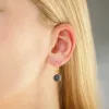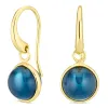 mørkeblå krystall øredobber i forgylt sølv med blank overflate og 2 glatte mørkeblå krystaller.