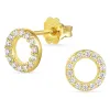 runde hvit ørestikker i forgylt sølv med blank overflate og glatt hvit zirkon.