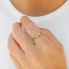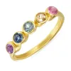 multifarget ring i forgylt sølv med blank overflate og 1 fasettslipte lilla ametyster og 1 glatte mørkeblå krystaller og 1 glatte grønne krystaller og 1 glatte gule citriner og 1 glatte rosa krystaller.