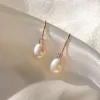 lange øredobber i 9 karat gull med blank overflate og 2 fasettslipte hvite zirkoner og 2 Erteformede hvite ferskvannsperler.