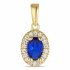 rosett zirkon anheng i 8 karat med blank overflate og 1 fasettslipte blå zirkoner og fasettslipt hvit zirkon.