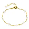 perle armbånd i forgylt messing med blank overflate hvit ferskvannsperle.