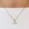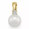 perle diamantanheng i 9 karat gull med blank overflate og 1 briljantslipte hvit diamanter WESSELTON/SI 0,05 ct og 1 hvite ferskvannsperler.