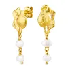 perle øredobber i forgylt messing med matt overflate 2 hvite perler.