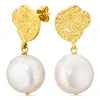 perle øredobber i forgylt messing med strukturert overflate 2 hvite perler.
