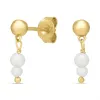 hvit perle øredobber i forgylt sølv med blank overflate.
