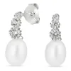 perle øredobber i sølv med blank overflate og fasettslipt hvit zirkon 2 hvite ferskvannsperler.