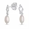 perle øredobber i sølv med blank overflate 2 hvite perler.