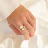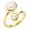 perle ring i forgylt messing med blank overflate og glatt hvit perle.