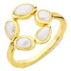 perle ring i forgylt messing med blank og børstet overflate og glatt hvit perle.